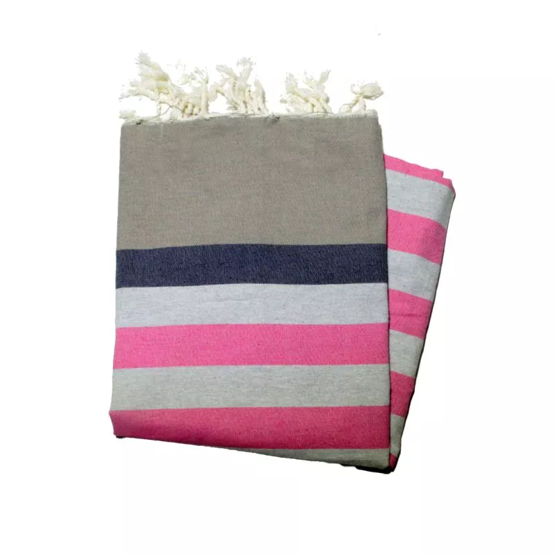 Flaches Fouta von Kerouan in Taupe, Marineblau, Grau und Fuchsia