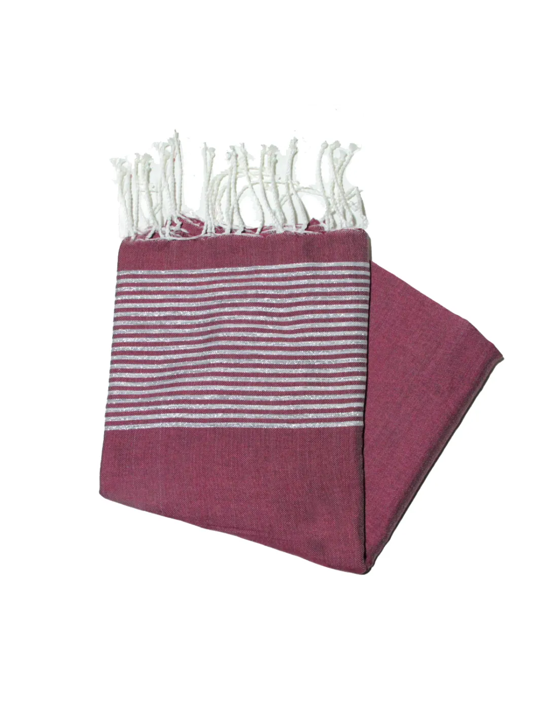Flaches Strandtuch aus burgunderrotem und silbernem Lurex