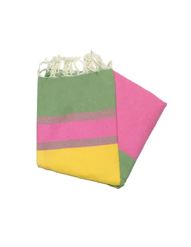 Fouta plana Tozeur azafrán, fucsia y verde