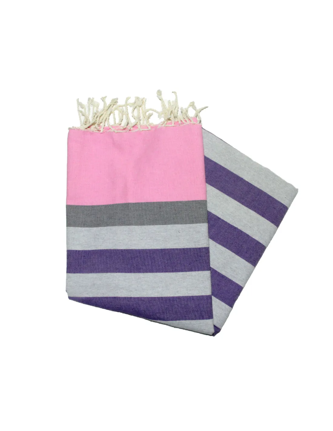 Fouta plate kerouan rose malabar, gris moyen, gris clair & lavande