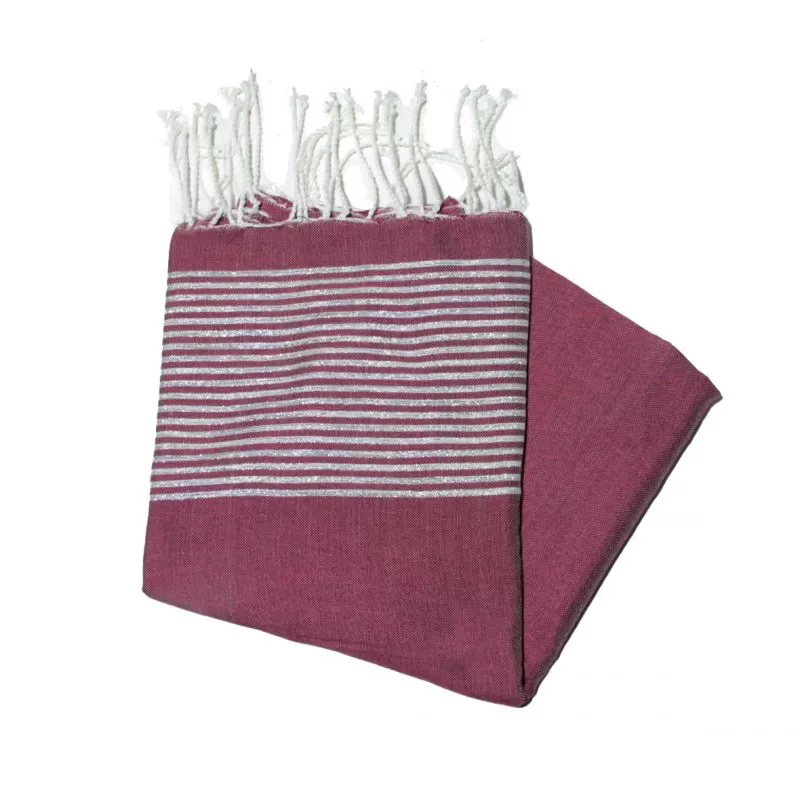 Toalha de praia plana em lurex prata bordô